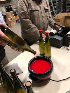 After two rackings to remove sediment, the wine is ready for bottling. The bottles are cleaned, pumped with argon gas, wine is poured, and bottles are immediately corked.